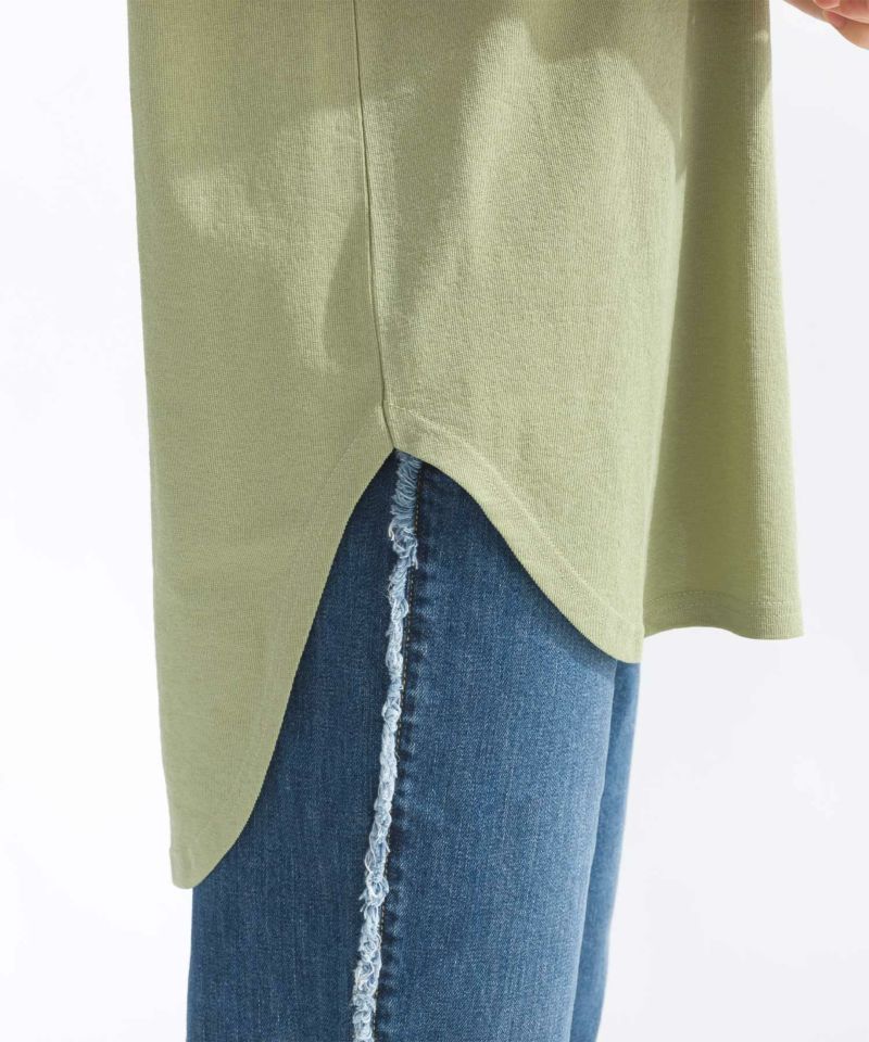 凹凸のある生地で素肌にまとわりつかない爽やかな着心地が特徴。
