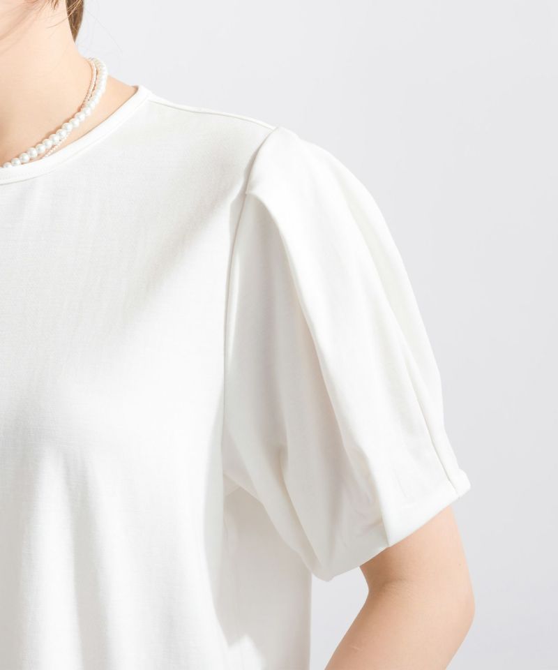 カジュアルからキレイめまでマルチに使えるタックスリーブカットソー