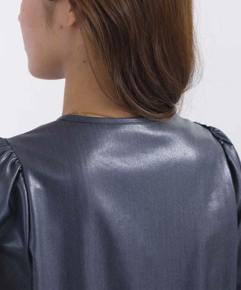 ボリュームスリーブから覗く手首が華奢見えするので秋口に1枚で着るシャツとしておすすめ。