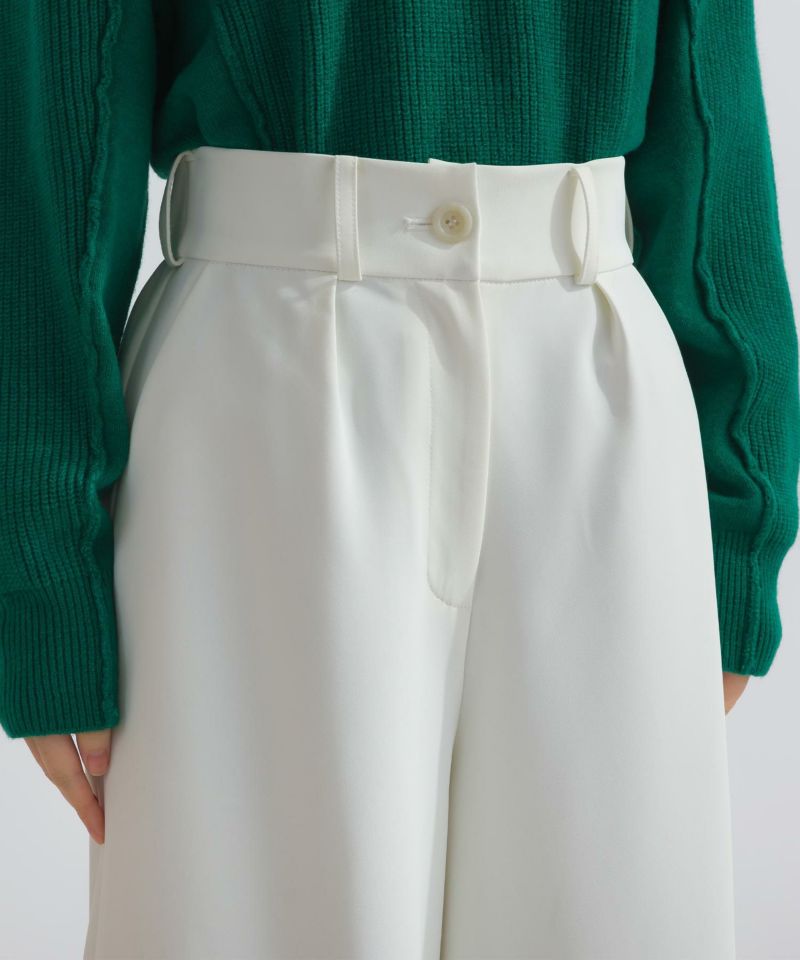 オフホワイト購入しました ・家で洗える素材 ・ポケット付き ・裏地(膝上まで)が淡いベージュ と、とても気が利いていて控えめに言って最高です 低身長なのでウエストをクリップで留めるのですが、ハリがある上に落ちがいい素材で縫製も良く、シルエットが全く崩れません 色違いで購入したいので再入荷待ってます
