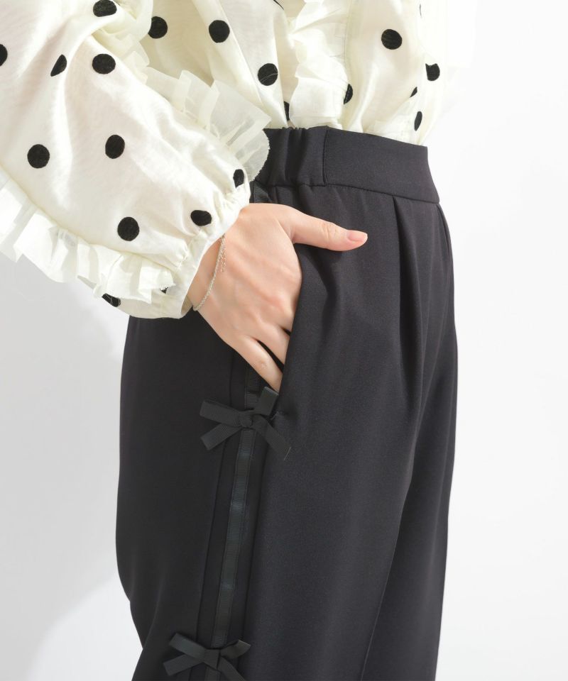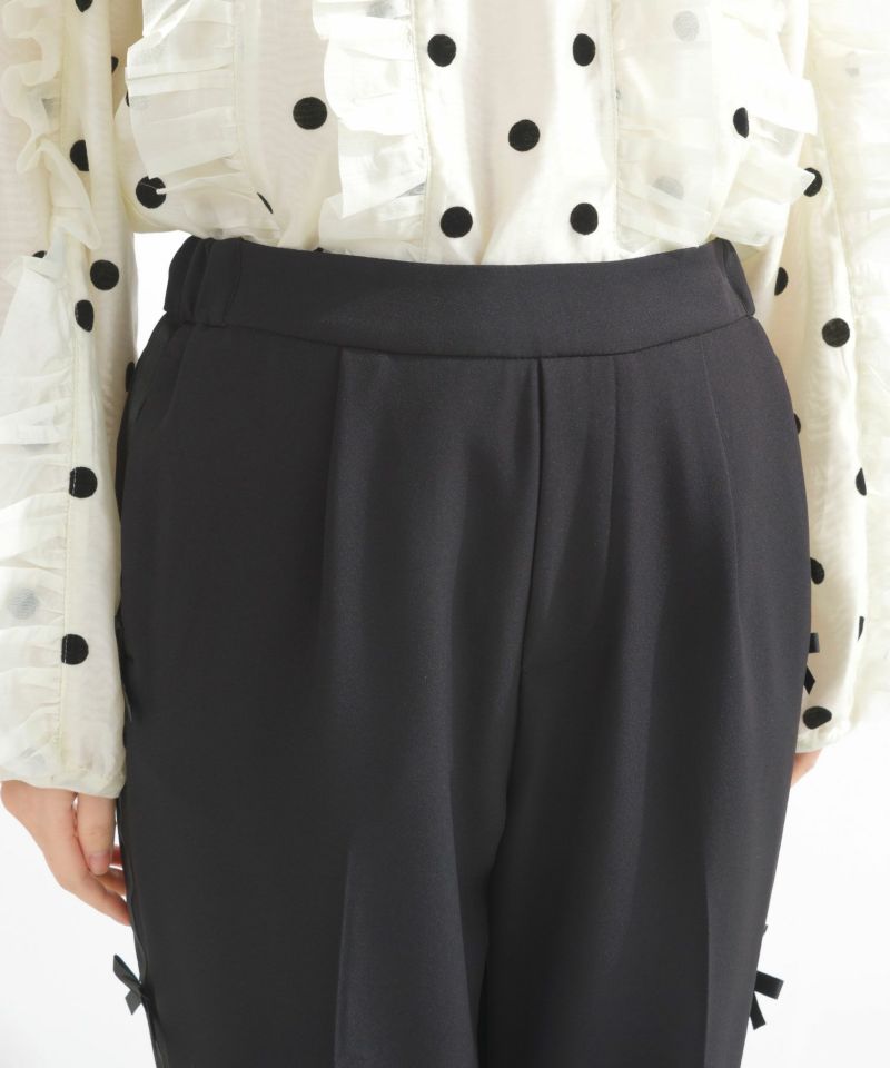 大人のレディスタイルに重宝するサイドリボンパンツ。