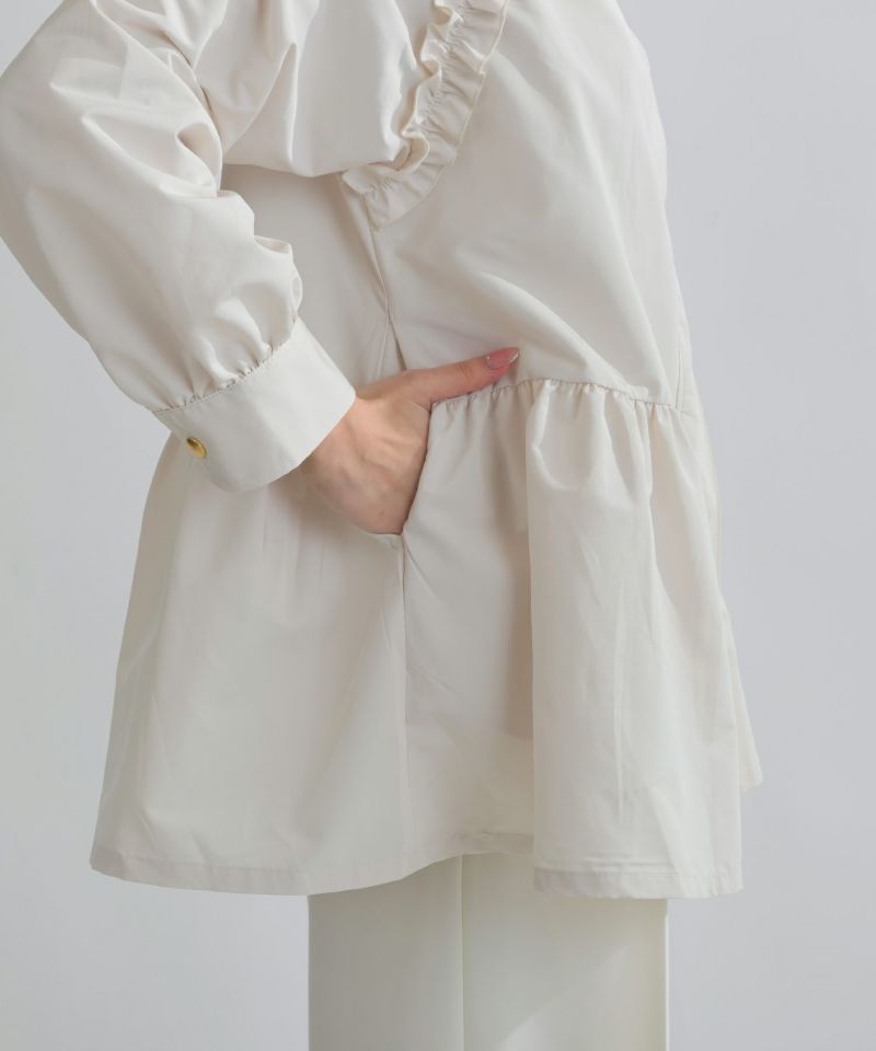 たっぷりとフリルがあしらわれた大人フェミニン漂うマウンテンパーカー。
