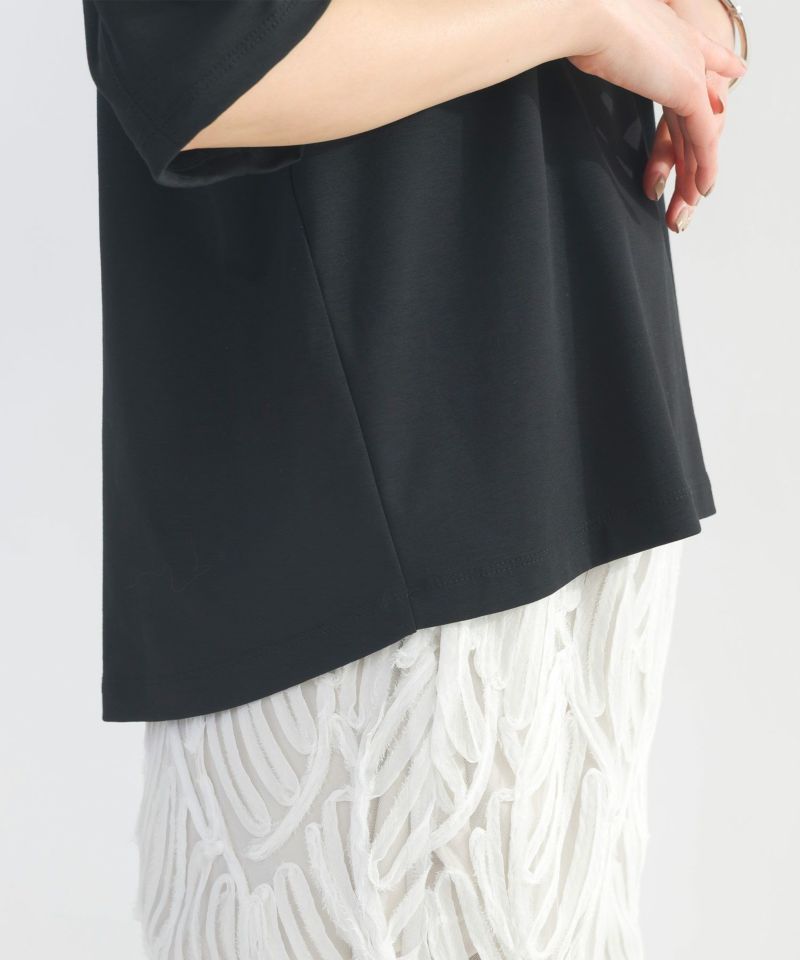 5分袖丈のランタンスリーブを採用し、程よいボリューム感で二の腕をカバーしてくれます。