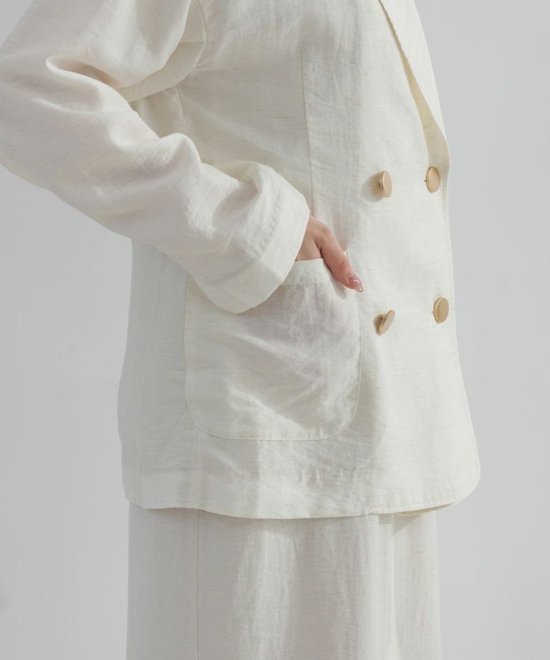 裏地がない分軽くて、さっと羽織ってもごわつかず、春夏のコーデに自然になじみます。