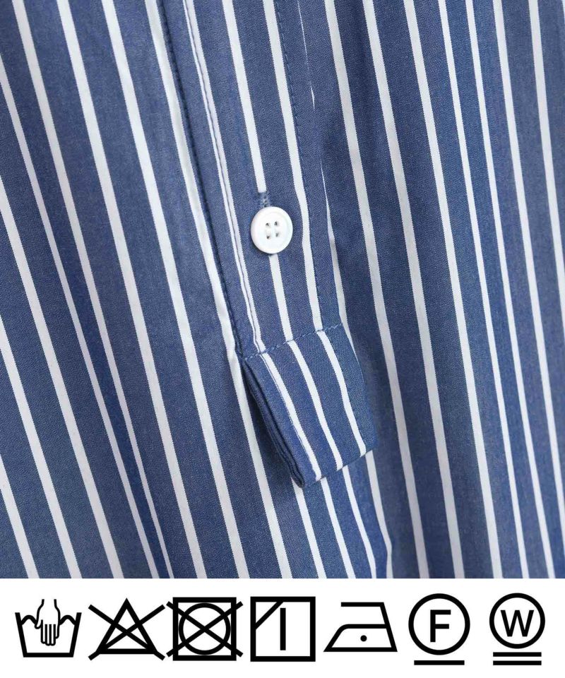 コットンブレンドのストライプ柄の布帛生地を使用。