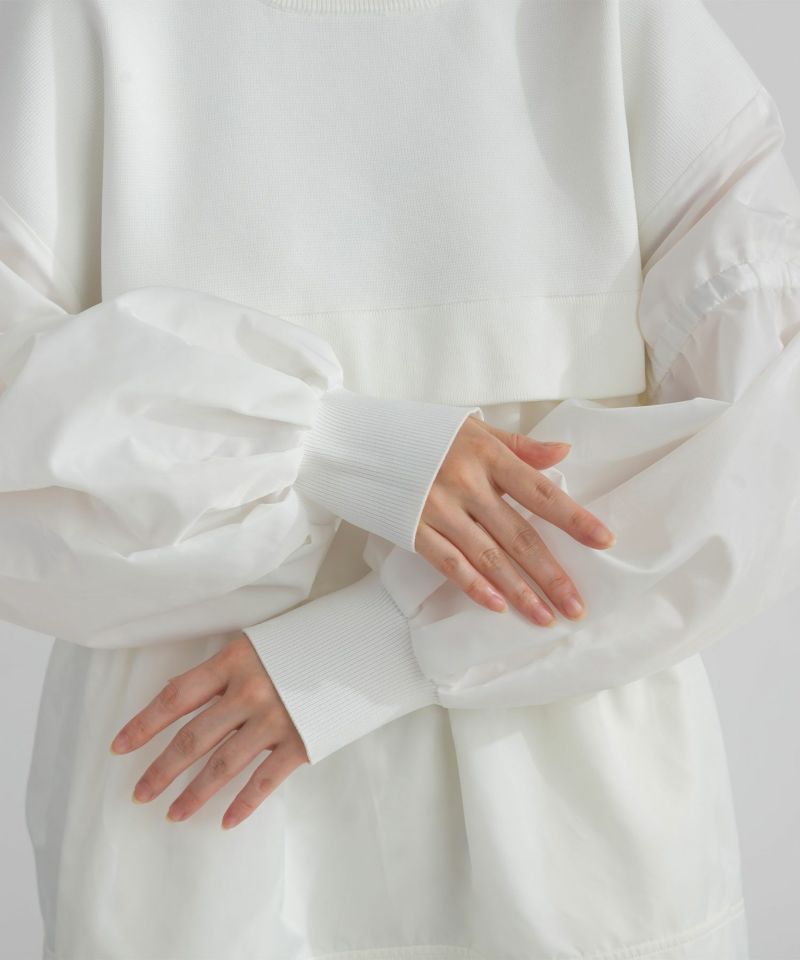 袖や切り替え下からは、適度なハリやつるんとした質感の上質なナイロン生地をドッキング。