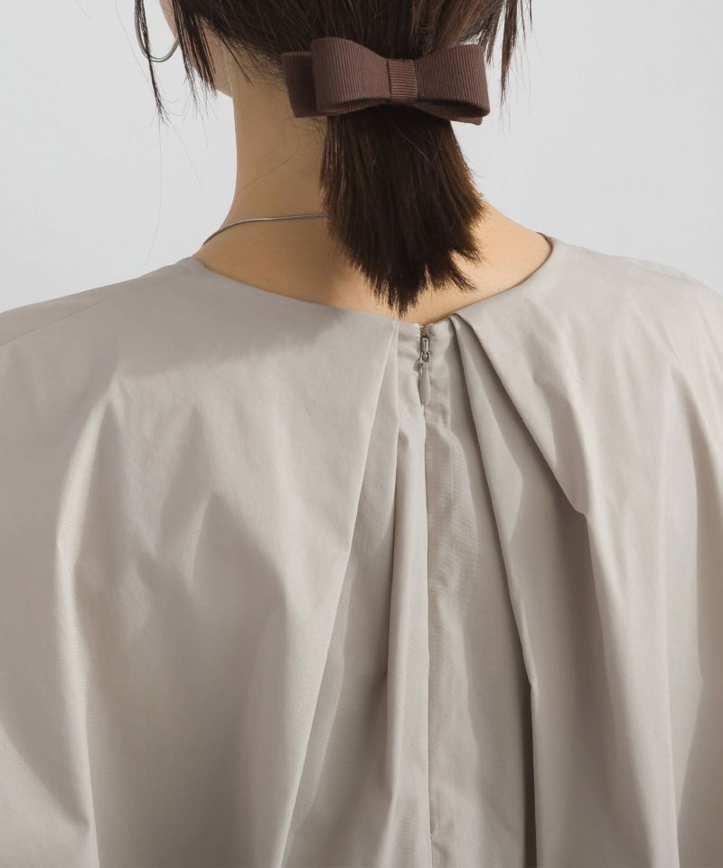後ろの襟ぐりには、立体的なタックデザインが入り、後ろ姿まで美しく。