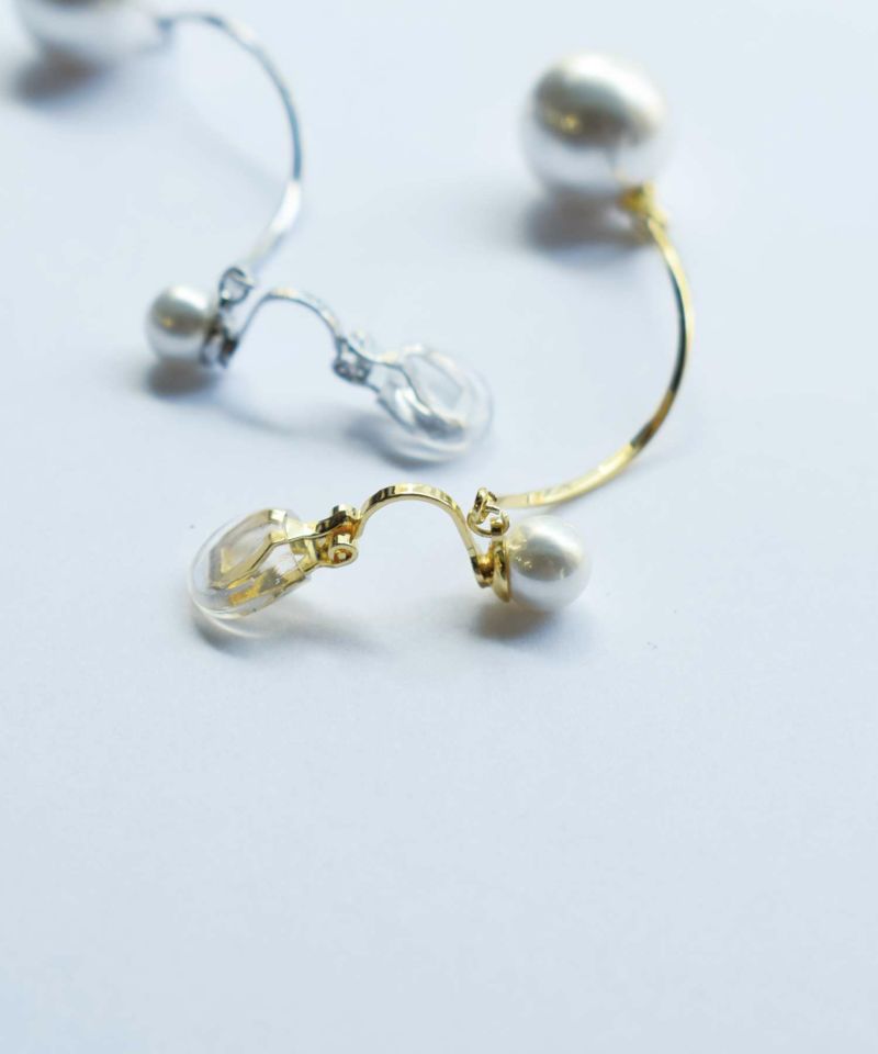 顔周りをゴージャスに演出してくれるパール付きイヤリング。
