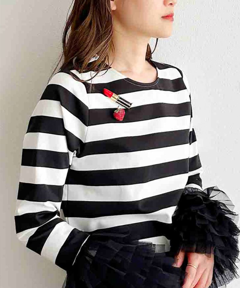 トップスの襟元やジャケットのラペル、バッグや帽子・スカーフなどの小物にも。