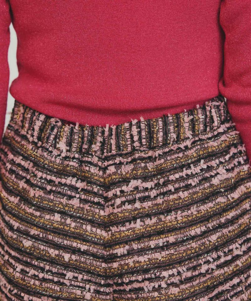 ラメ糸や異素材のカラー糸を織り込んだツイード素材は、優しく光をまといながらも、柔らかくて履き心地らくちん。