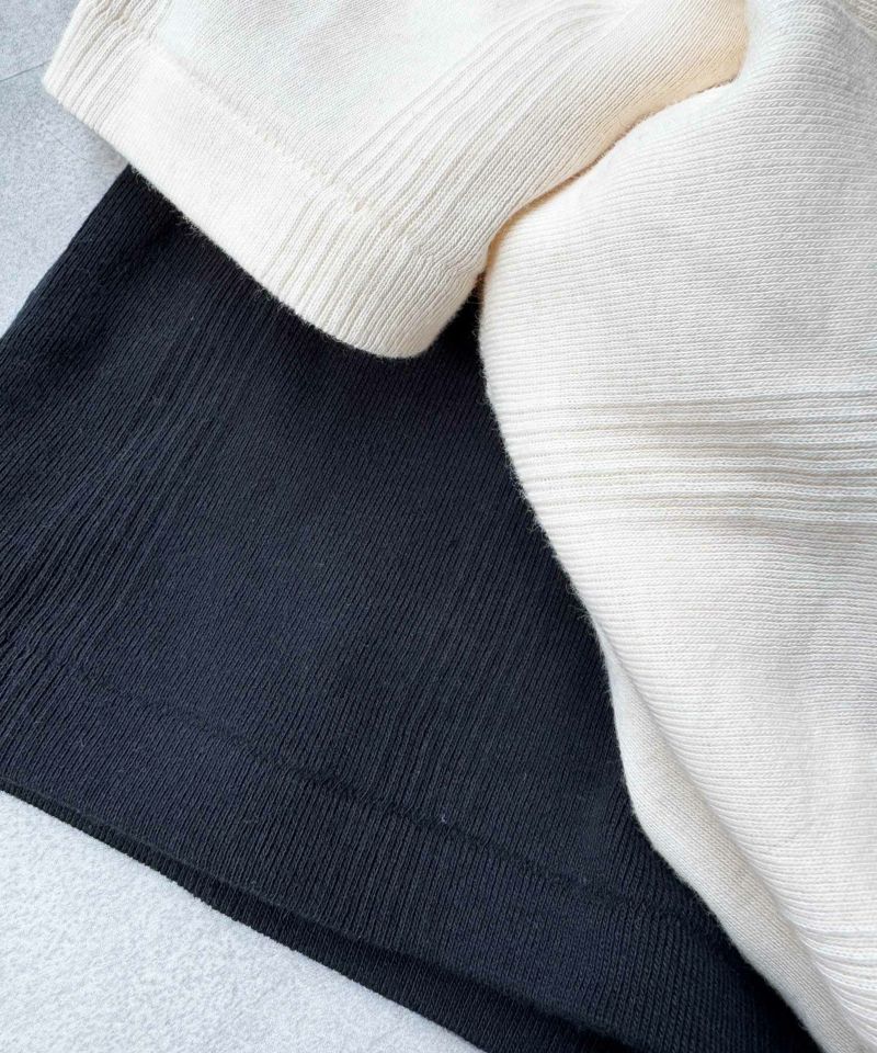着心地抜群の肌に優しいコットン生地は収縮性に優れておりボディにやさしくフィット。