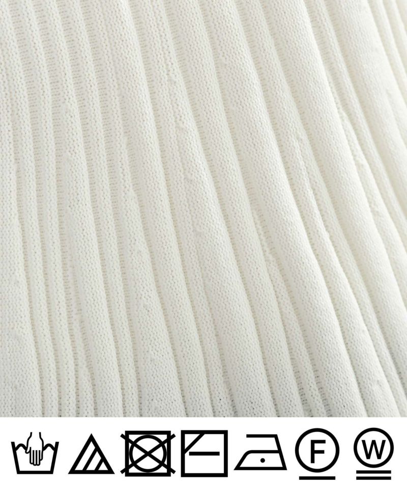 ランダムリブニットの独特な表情と、裾の異なる編地が絶妙なアクセントに。