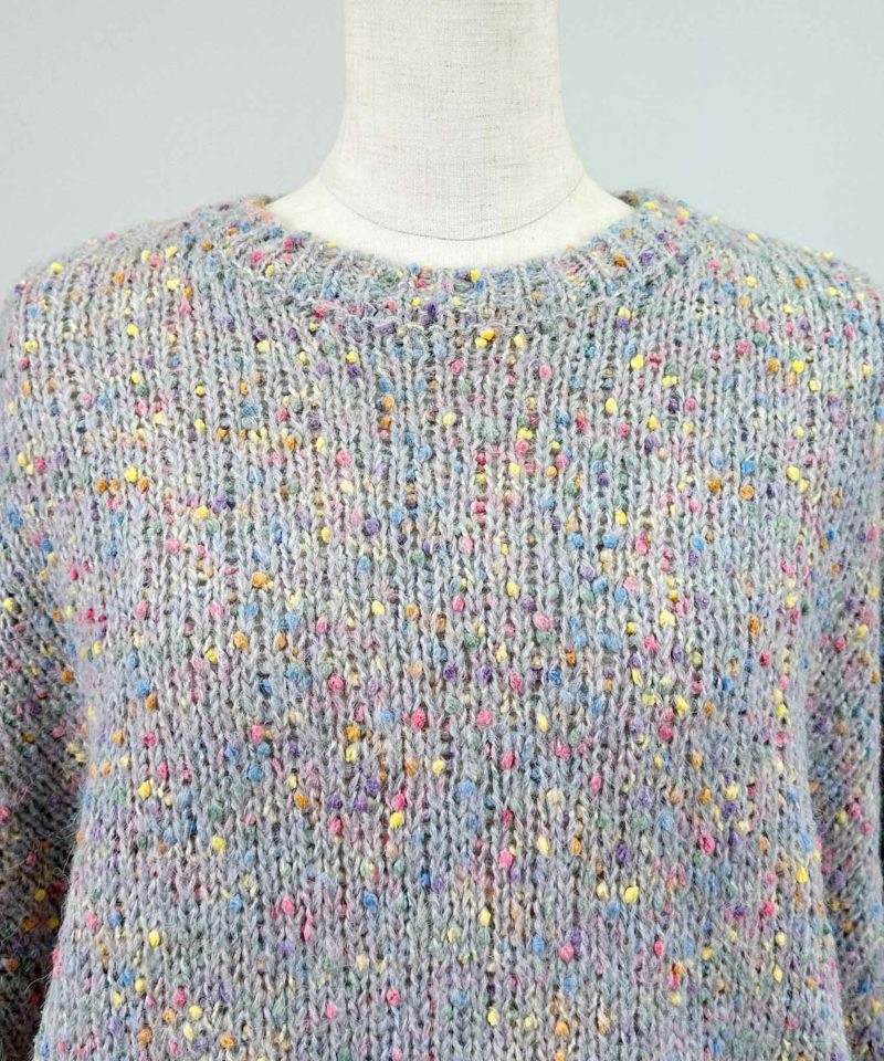 柔らかなミックスカラーのポンポンヤーンに、ウールとモヘアを少しだけプラス。