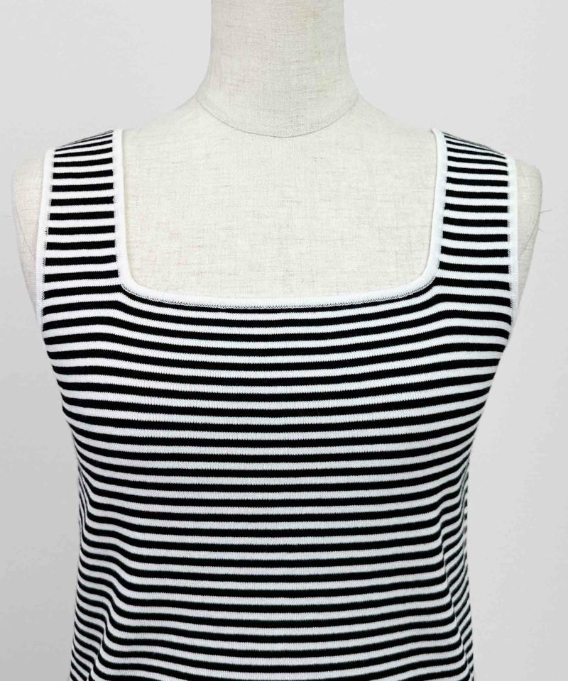 スクエアネックのデザインが、顔周りをスッキリと見せてくれ、程よい抜け感を演出。