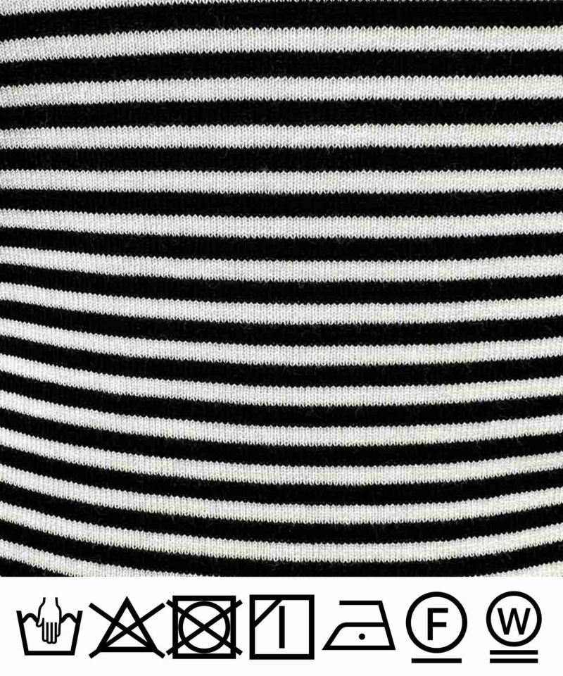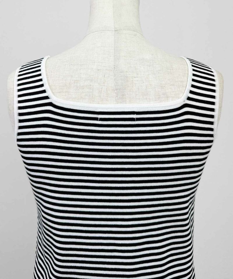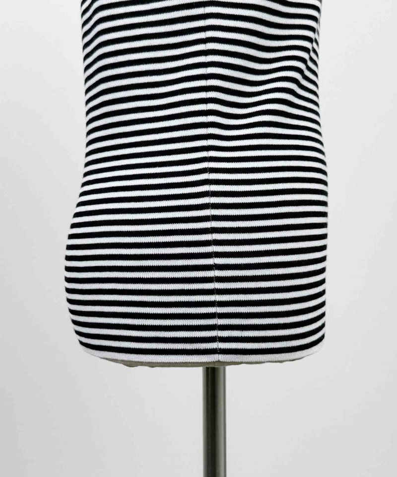 細めのボーダー柄で、コーデにアクセントと大人っぽさをプラスしてくれます。