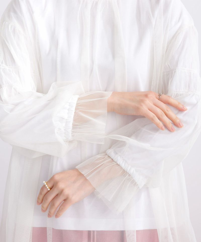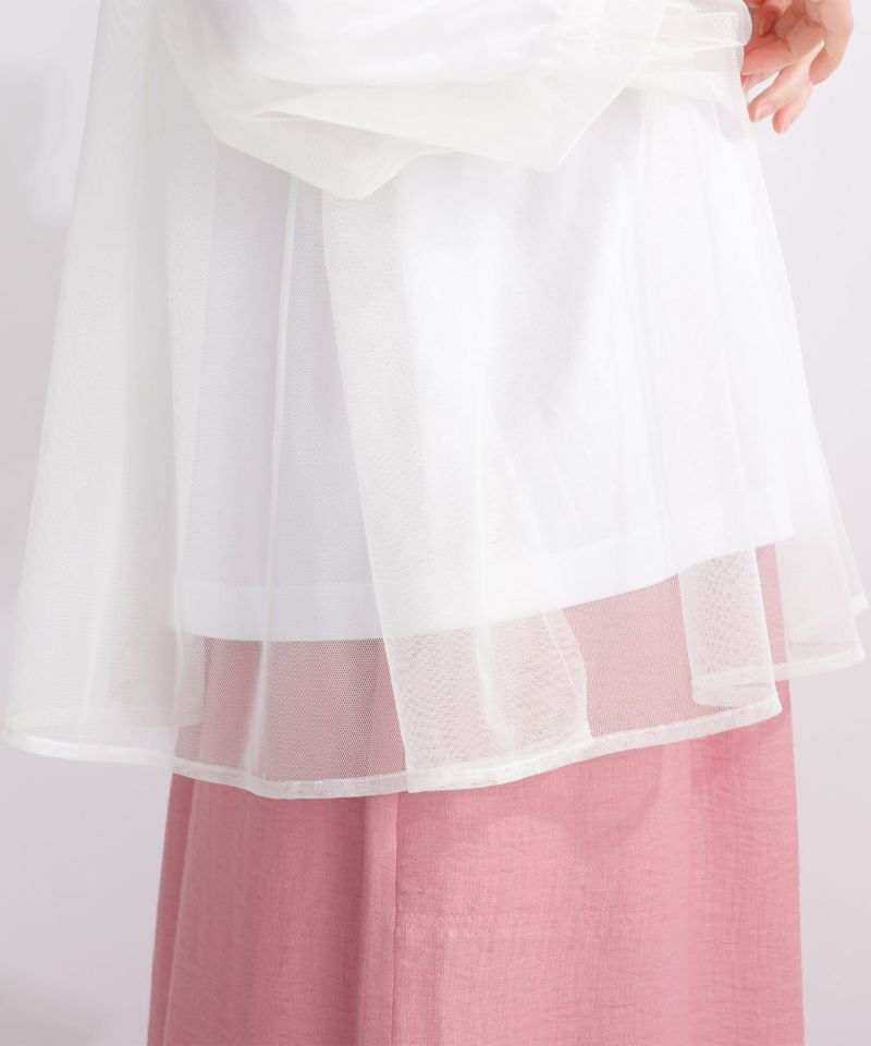 チュール生地を本体よりゆったりとオーバーめにレイヤードする事で、