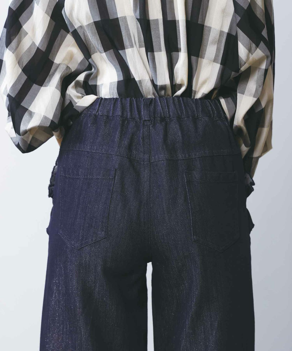 【セットアップ可能】ポケットフリルラメデニムパンツ