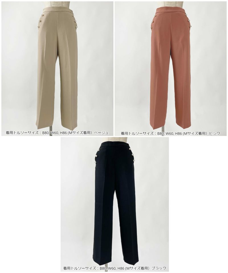 サイドに付いたパールが上品できれいめなワイドパンツ