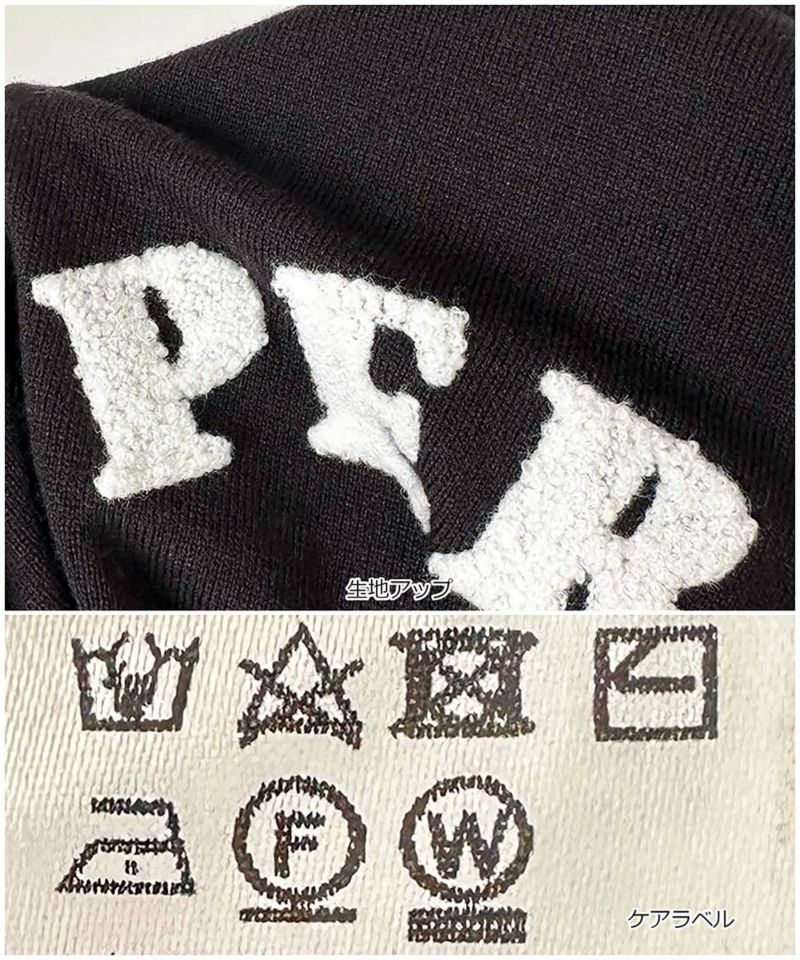 フロントロゴ部分はパイル地、袖口ロゴは刺繍になっており、