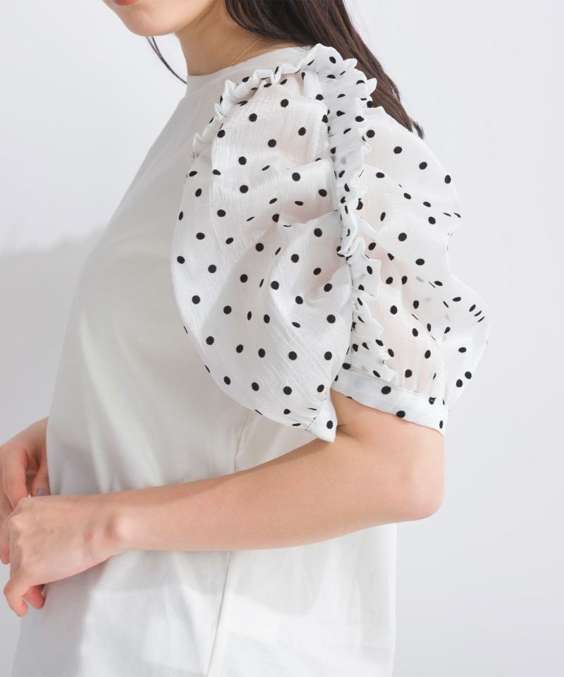 袖ドットフリルカットソー