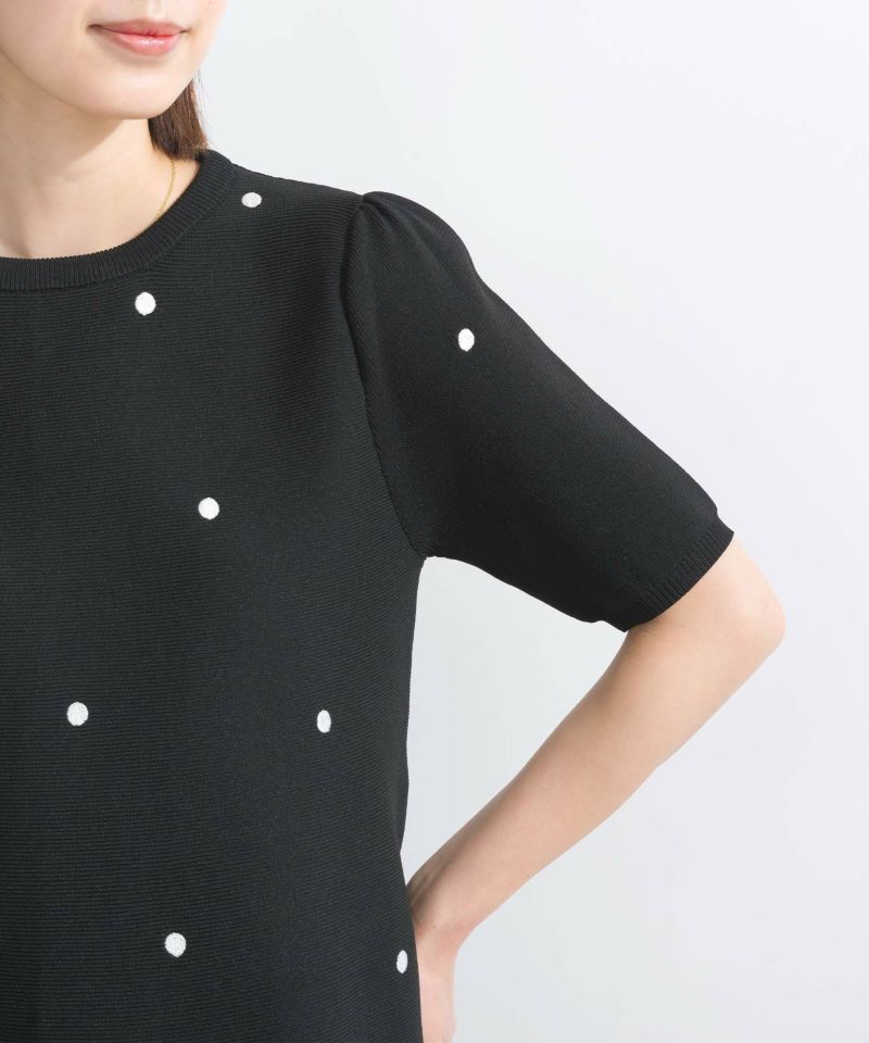 配色ドット刺繍や肩ギャザーを配し、女性らしく華やかな印象に。