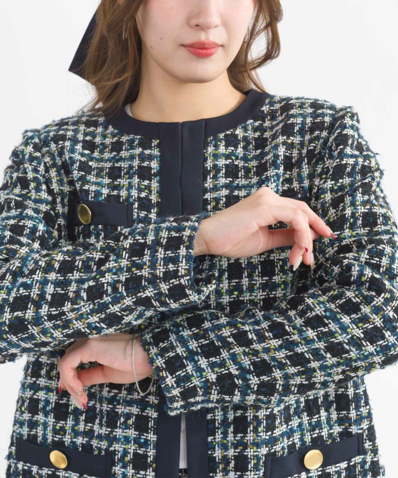 上品見えする上質なツイード生地を使用。