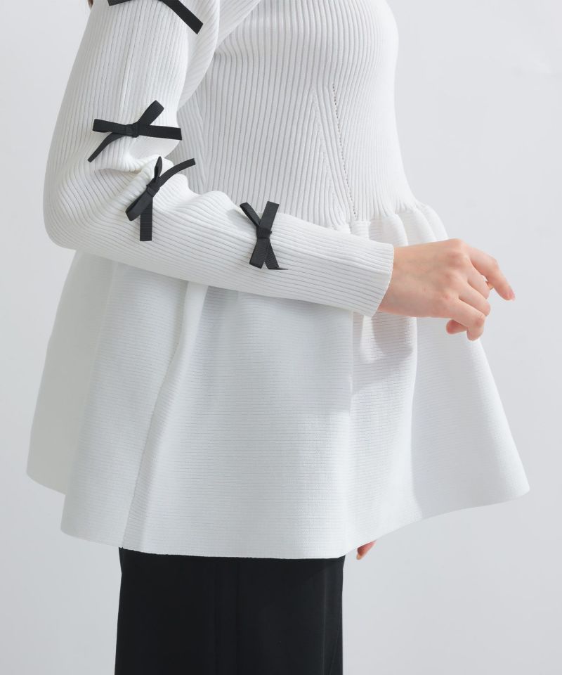 上身頃や袖はリブニット、切り替えから異なる編地のニットを採用し表情をプラス。