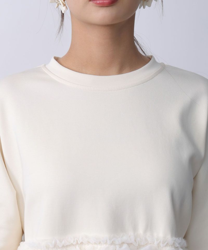 一枚で可愛いが仕上がるチュール切り替えプルオーバー
