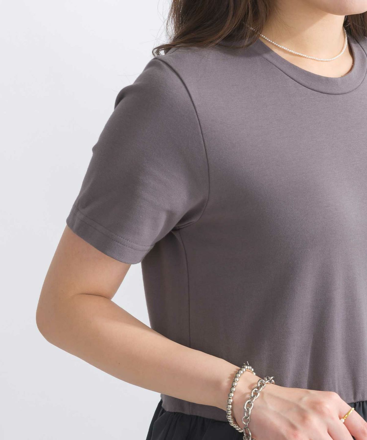 袖チュールクルーネックロングTシャツ
