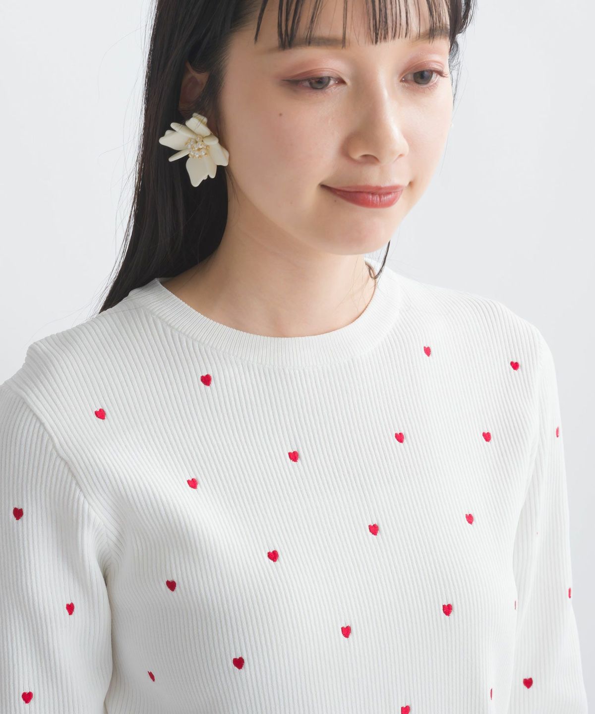 ハート柄リブニットトップス