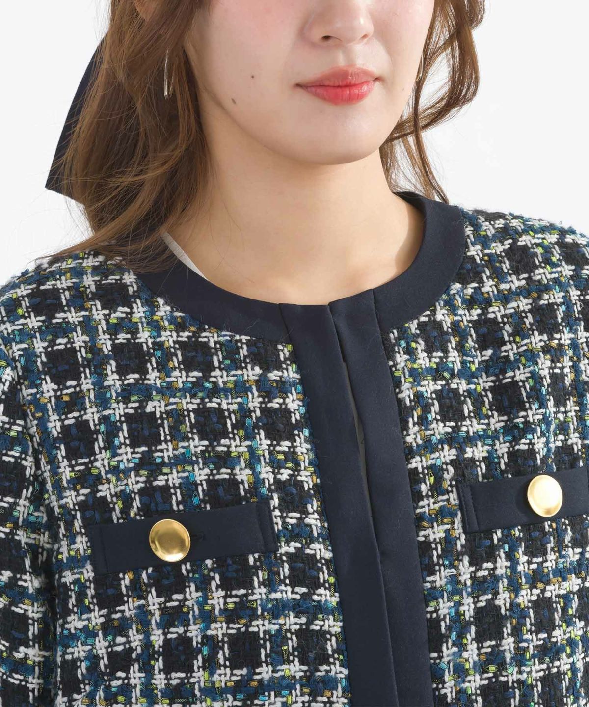 【セットアップ可能】ポケット付きツイードコート