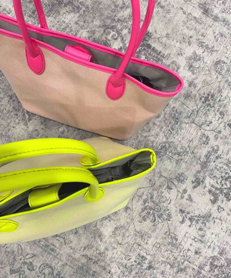 柔らかいキャンパス地にシープレザーがアクセントとなり