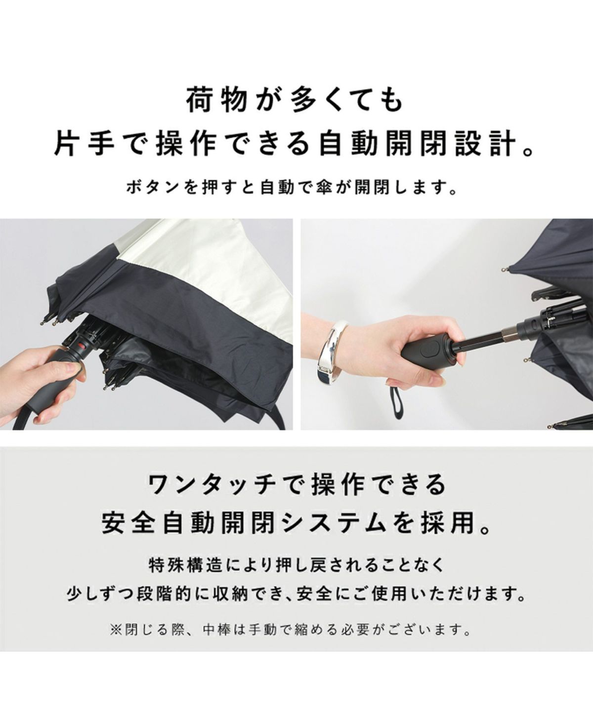 【完全遮光100%】IZA(イーザ) 【Automatic & Safe】自動開閉折り畳み傘 晴雨兼用