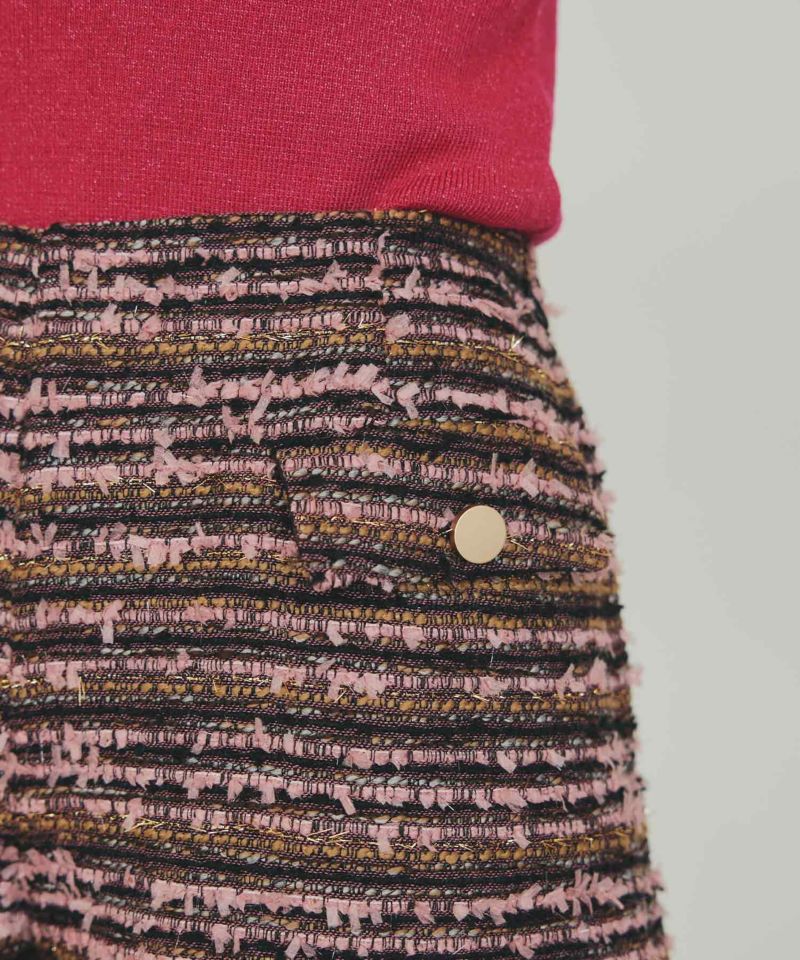 ラメ糸や異素材のカラー糸を織り込んだツイード素材は、優しく光をまといながらも、柔らかくて履き心地らくちん。