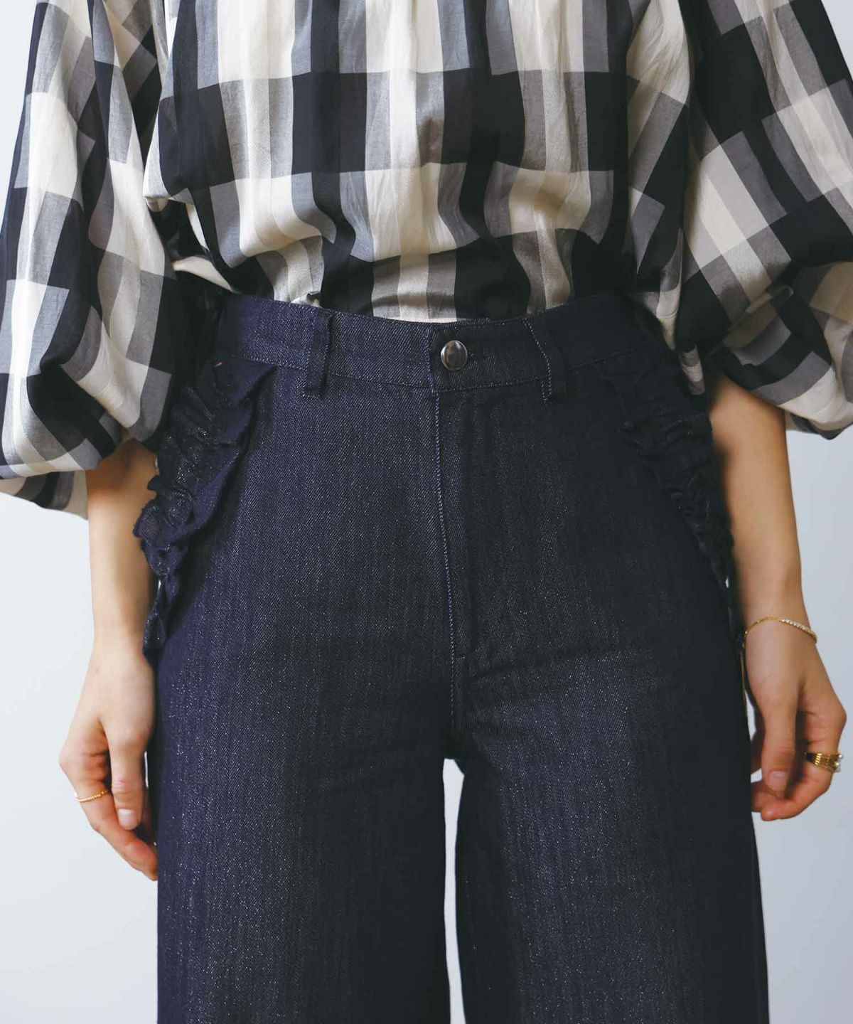 【セットアップ可能】ポケットフリルラメデニムパンツ