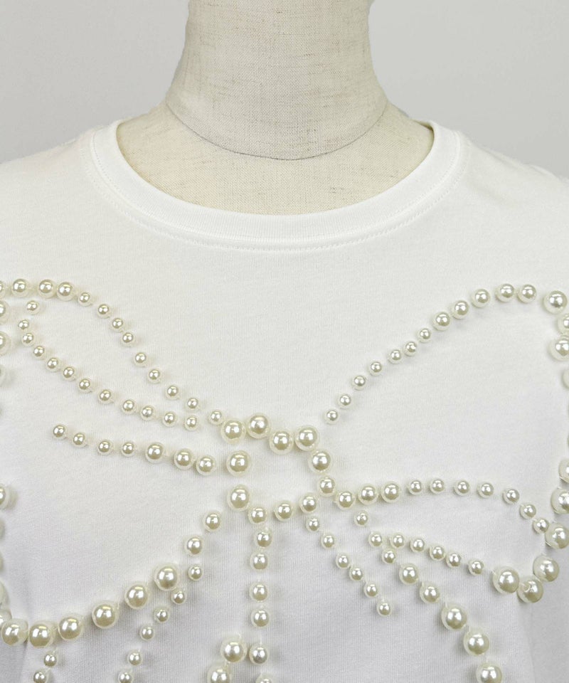 カジュアルアイテムながらも、パールによって可愛らしさと華やかさが増し、