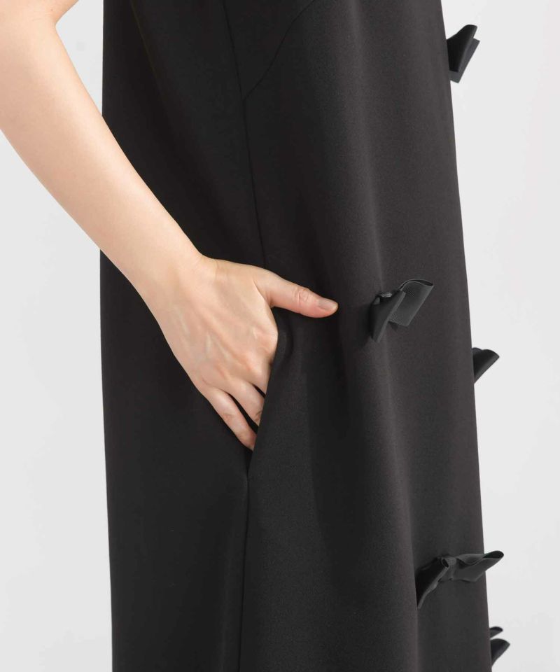 シンプルなジャンパースカートのフロントにグログランリボンを散りばめ、存在感と甘さをプラス。