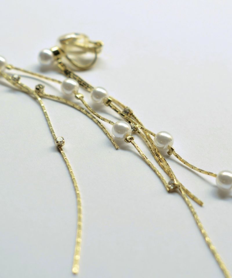 ストーンとパールがミックスされたチェーンのロングイヤリング