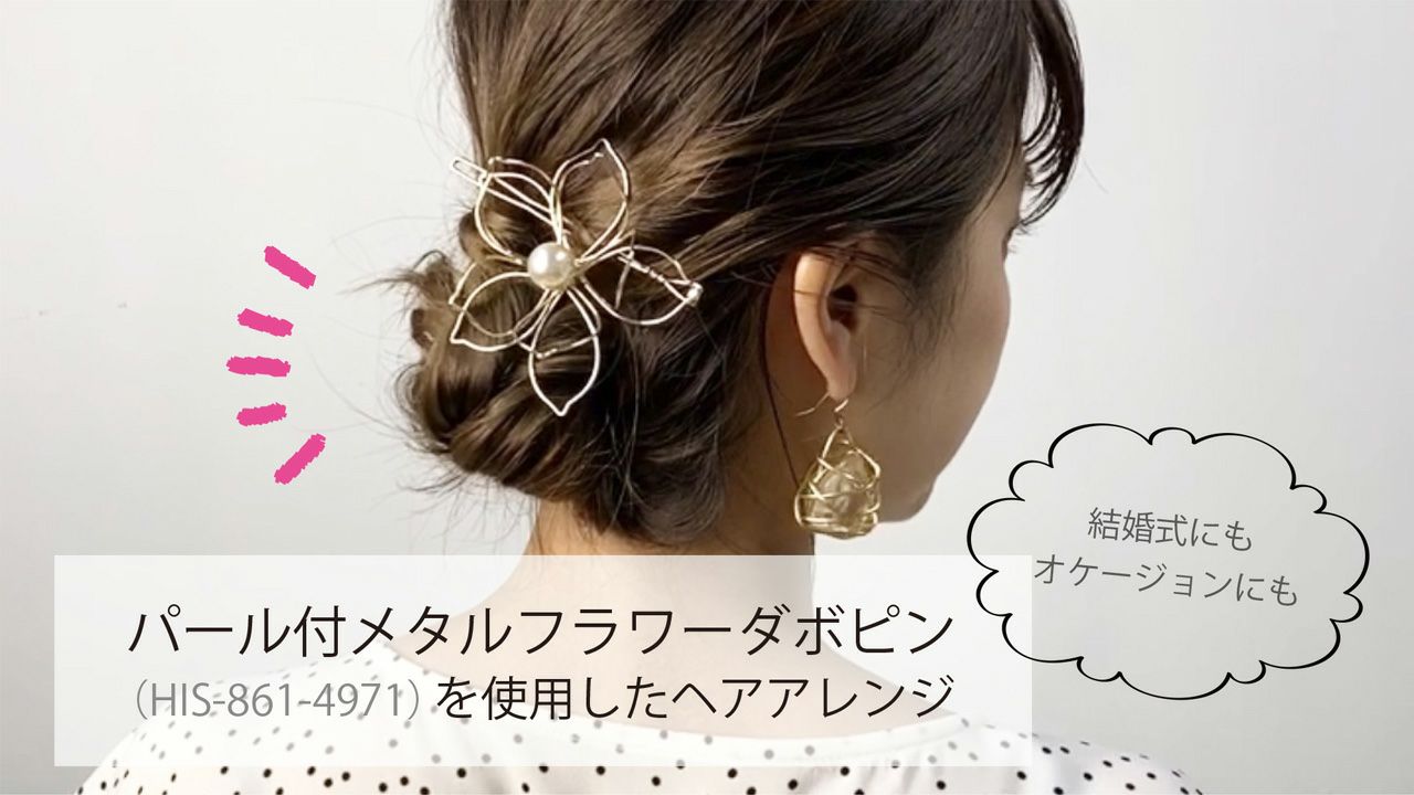 パール付メタルフラワーダボピンを使用したヘアアレンジ -