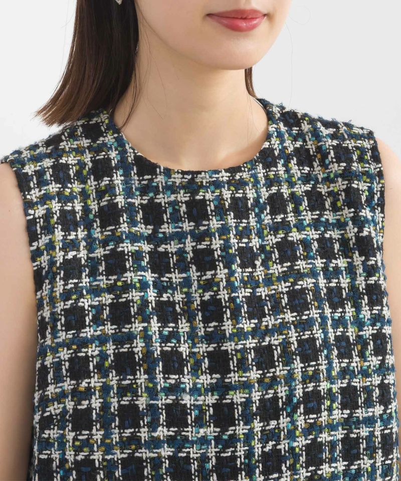 素材の異なるカラー糸を巧みに織り交ぜたツイード生地は、