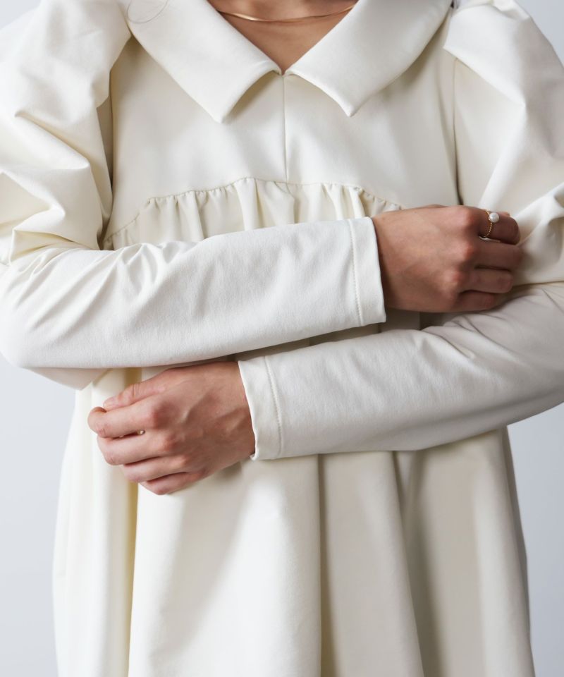 肩にボリュームを持たせた分、身頃の内側にくって袖が付いているので