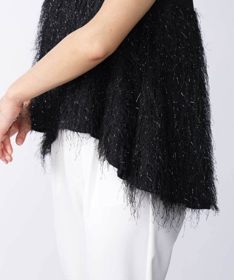 ラメ糸をミックスしたフェザーが、自然なきらめきを纏わせてくれます。