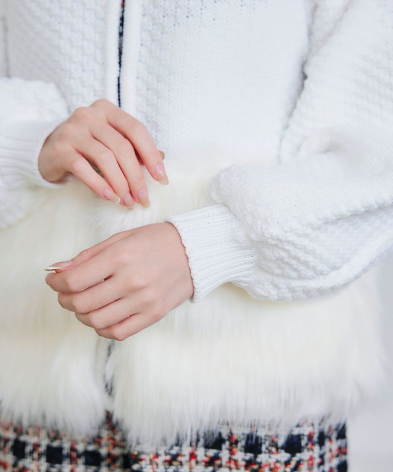 胸から下は艶感がゴージャスなフェイクファー切り替え