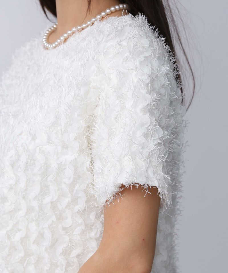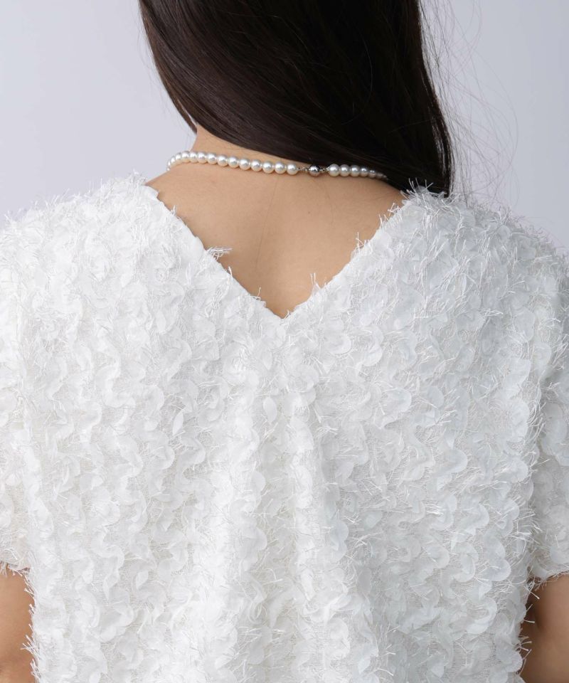 シアーテープと羽のようなフリンジが揺れるプルオーバー