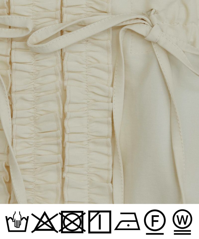 前立てや袖口に大胆にあしらわれたフリルが、シンプルながらもコーデに表情をプラスしてくれます。