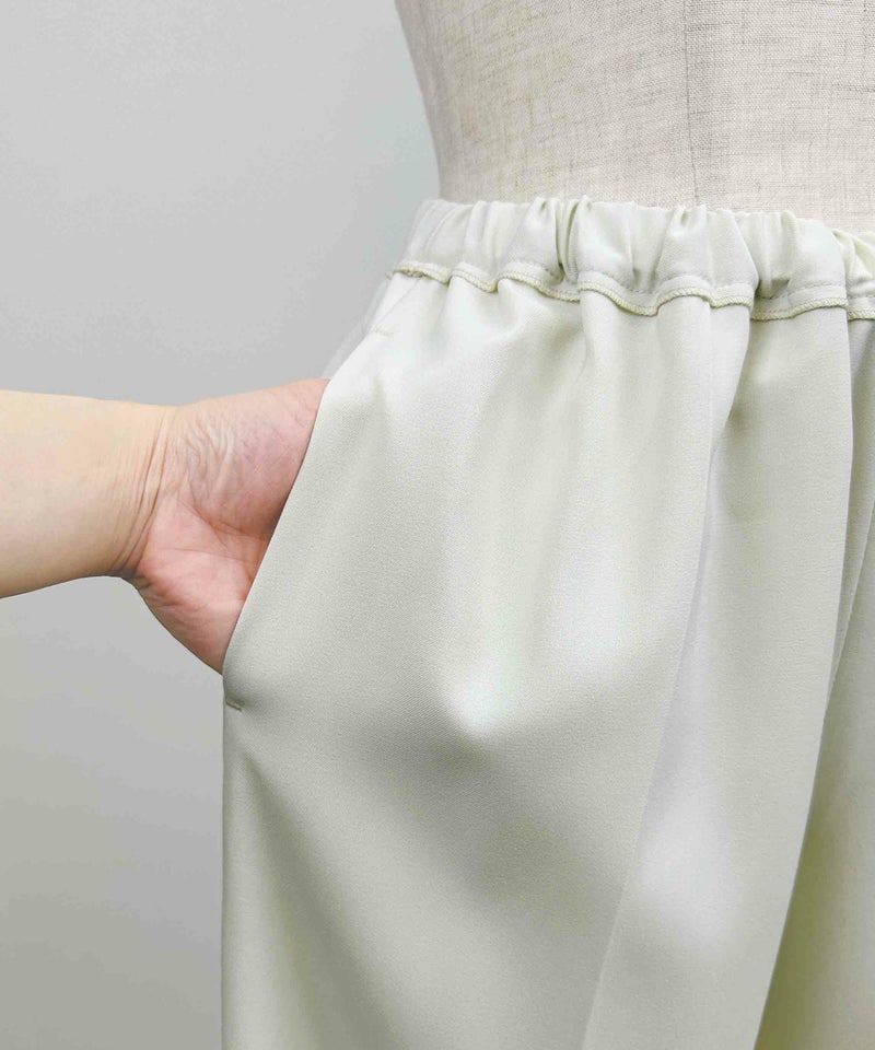 ウエストのメロー始末と内側に配したリボンのドロストがさり気ないアクセントに。