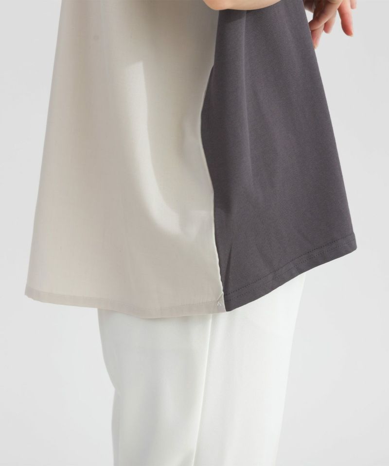 異素材ドッキングのデザインなので、前後で異なる雰囲気を楽しめる1枚です。