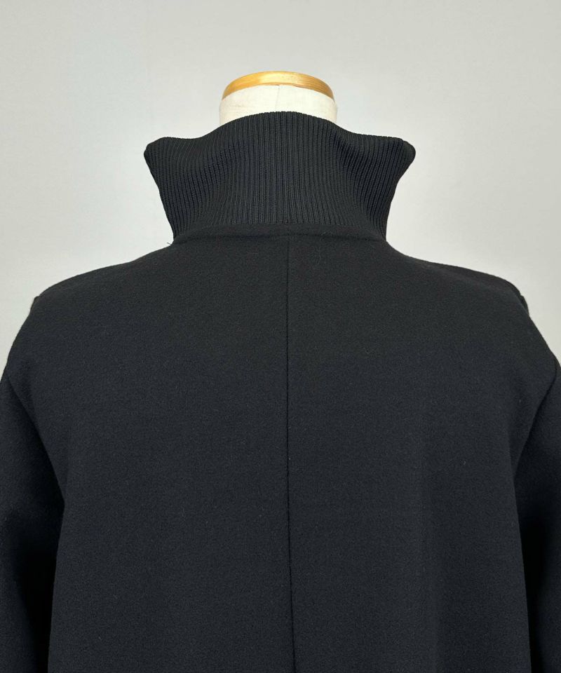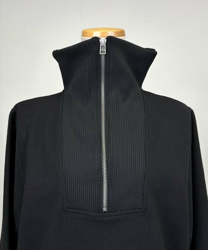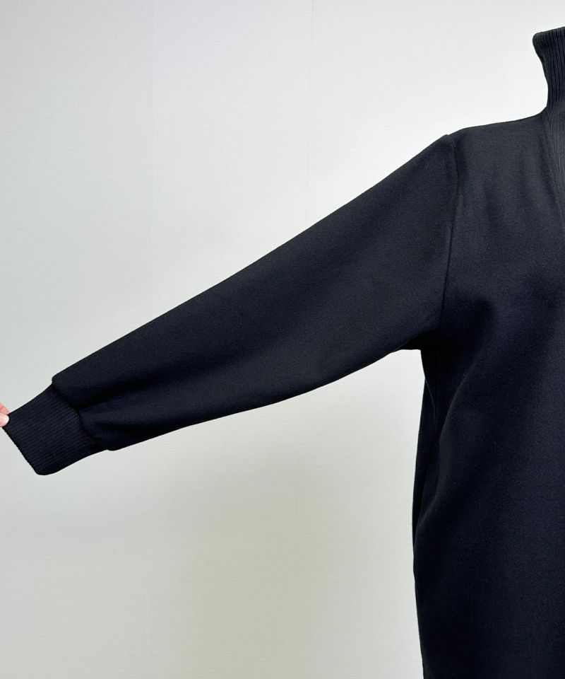 ファスナーの開き具合で印象が変わり、上まで閉めれば