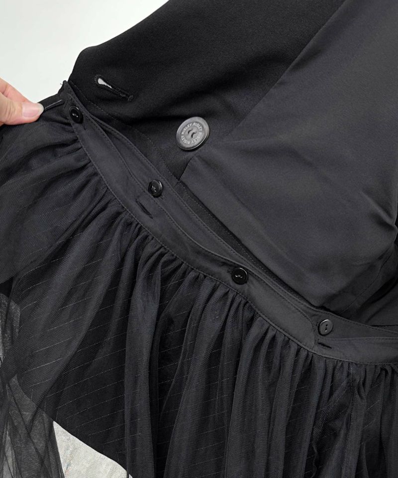 大人のおしゃれ心をくすぐるロングチュールテーラードカラージレ