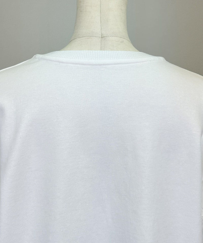 | 素材 | 本体: 綿86%,ポリエステル14% 別布: 綿65%,ナイロン32%,ポリウレタン3% チュール部分(袖裏側): ポリエステル100% リブ部分: レーヨン54%,綿36%,ナイロン8%,ポリウレタン2% |